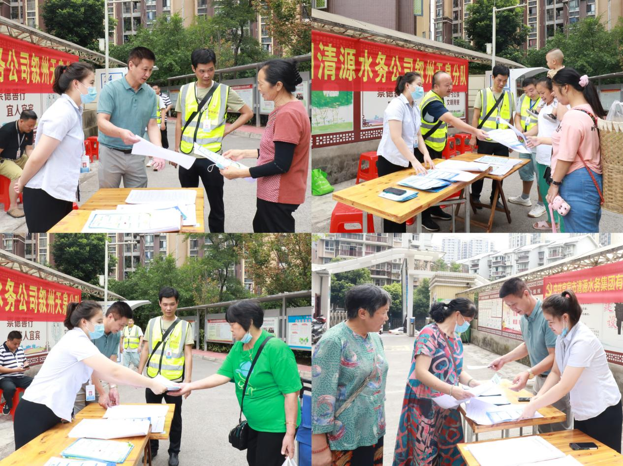 “如何判斷自來水有無水質問題”、“自來水為何有沉淀物”、“為何自來水有異味”……活動中,公服集團清源水務公司敘州天泉分隊的隊員們采用發放宣傳單、懸掛橫幅、現場服務等方式,向過往的社區群眾發放了“供水服務手冊”“水法律及飲用水衛生知識”宣傳材料,現場講解了水費繳納、自來水知識科普、業務辦理等內容,解答了群眾關心的供水水質、水壓、抄表、收費、用水設施維修維護等問題,并現場聽取征求群眾對供水工作的意見和建議,把供水服務延伸到群眾身邊。
